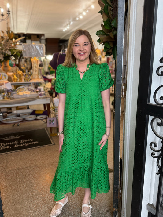 Kelly Green Eyelet Maxi Dress