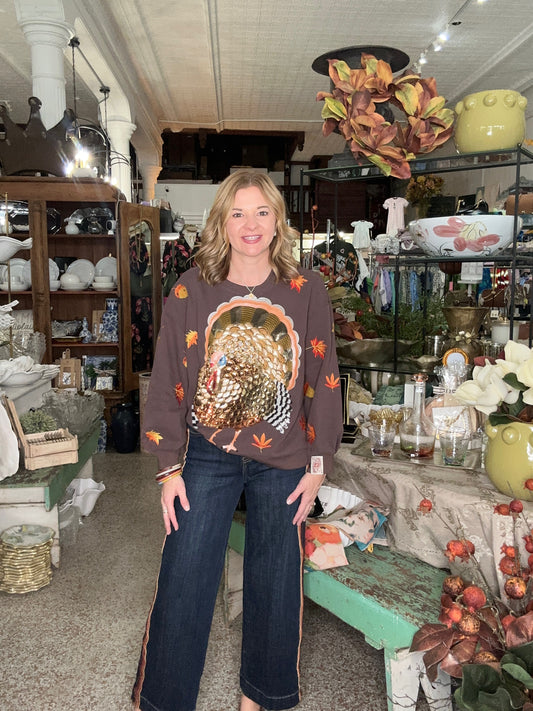 Queen of Sparkles Brown Turkey & Leaves Sweatshirt